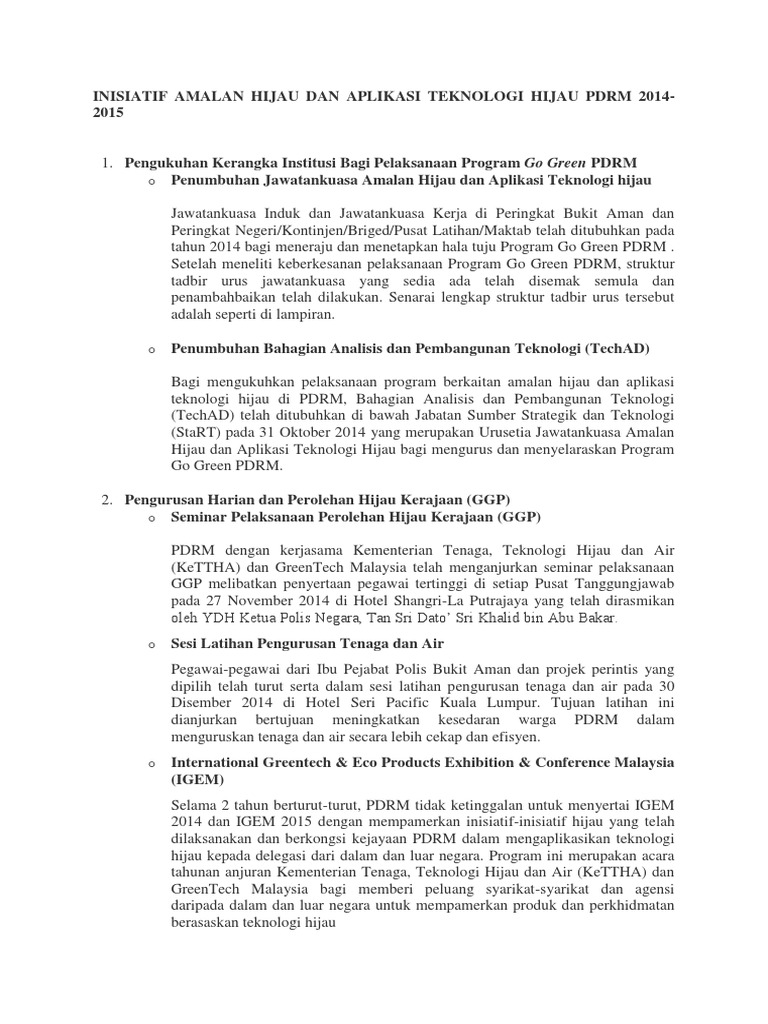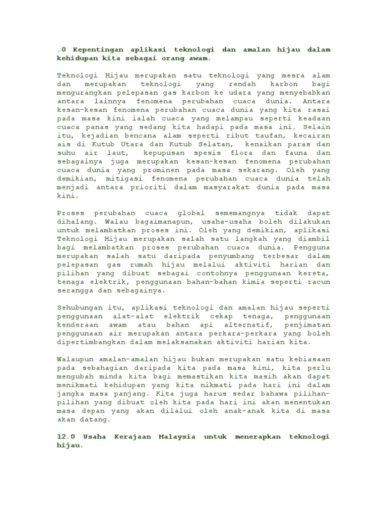 This is program amalan hijau dan aplikasi teknologi hijau by mazlan rahmat on vimeo, the home for high quality videos and the people who love them. Teknologi hijau di malaysia dan di dunia. Dengan itu, sektor pengeluaran makanan perlu membangunkan dan menggunakan pelbagai teknologi dan amalan ladang yang berkonsepkan pertanian pintar. Apakah amalan berkonsepkan teknologi hijau yang dapat menjimatkan tenaga? Inovasi dan pelaburan dalam teknologi sistem pertanian akan memainkan peranan penting dalam memupuk produktiviti pertanian. Teknologi hijau mempunyai peranan strategik yang lebih jauh daripada setakat mencapai autonomi ini dapat dibuktikan melalui pengalaman dan amalan di negara maju yang telah membangunkan teknologi hijau dapat membantu memulihara dan meminimumkan kesan buruk kepada alam sekitar. Cadangan amalan bekonsepkan teknologi hijau yang boleh melestarikan alam sekitar. Teknologi hijau a.k.a green technology by ana musafir 29029 views. Pengurusan sumber semula jadi yang tidak terancang membawa kemudaratan kepada alam sekitar. Untuk menjayakan strategi ini, kerajaan menubuhkan majlis teknologi hijau yang bertujuan memastikan penyelarasan pada peringkat tertinggi bagi mengimplementasikan dasar yang cekap. Pengaruh teknologi artificial intelligence, blockchain, bioteknologi, fintech dan sebagainya, seharusnya dapat dimanfaatkan oleh anak muda indonesia, untuk membawa kemajuan bagi bangsa, terutama dalam kaitannya dengan. Mencadangkan amalan berkonsepkan teknologi hijau. 1) apakah maksud teknologi hijau?