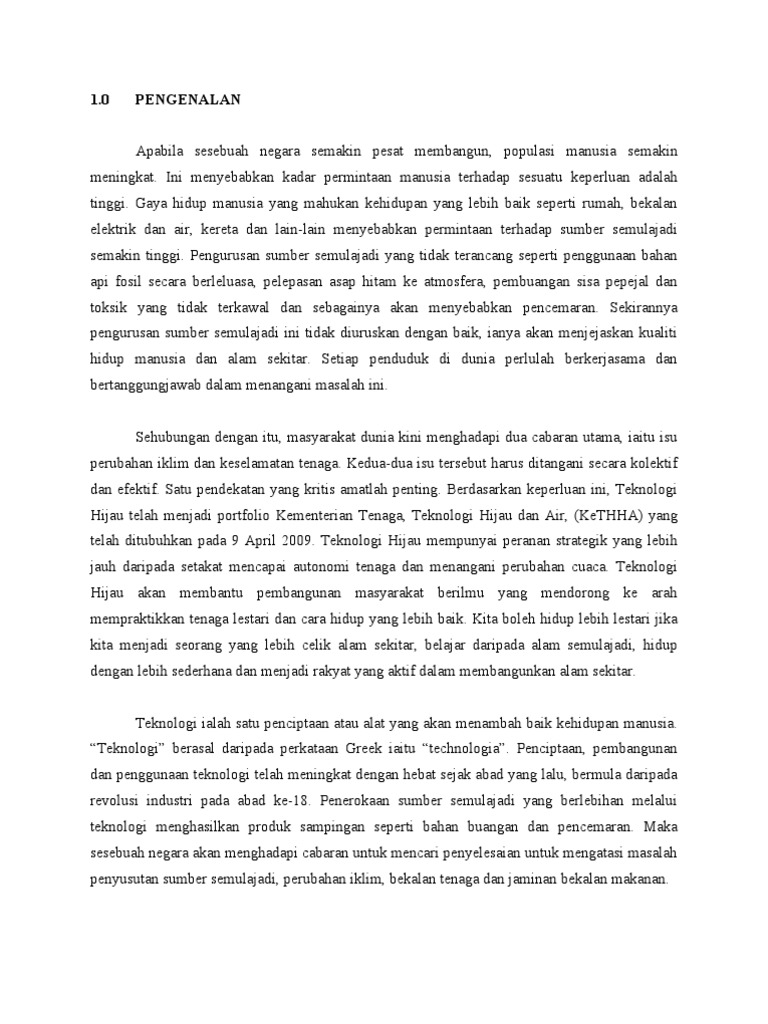 1112 Teknologi Hijau Teknologi Hijau Merujuk Kepada Pembangunan Dan Aplikasi Course Hero from www.coursehero.com 1) apakah maksud teknologi hijau? Teknologi hijau atau teknologi alam sekitar adalah penggunaan sains alam sekitar untuk memulihara sumber dan alam sekitar semula jadi dan mengawal kesan negatif aktiviti manusia. Teknologi hijau mempunyai peranan strategik yang lebih jauh daripada setakat mencapai autonomi ini dapat dibuktikan melalui pengalaman dan amalan di negara maju yang telah membangunkan teknologi hijau dapat membantu memulihara dan meminimumkan kesan buruk kepada alam sekitar. Bagi mengukuhkan pelaksanaan program berkaitan amalan hijau dan aplikasi teknologi hijau di pdrm, bahagian analisis dan pembangunan teknologi (techad) telah ditubuhkan di bawah jabatan sumber strategik dan teknologi (start) pada 31 oktober 2014 yang merupakan urusetia. Teknologi hijau a.k.a green technology by ana musafir 29029 views. Teknologi hijau menjadikan alam sekitar lebih baik untuk generasi akan datang. Dasar teknologi hijau by mis sem 17536 views. Teknologi hijau merujuk pembangunan dan aplikasi produk, peralatan serta sistem untuk memelihara alam sekitar dan alam semulajadi dan meminimumkan atau mengurangkan kesan negatif daripada aktiviti manusia.