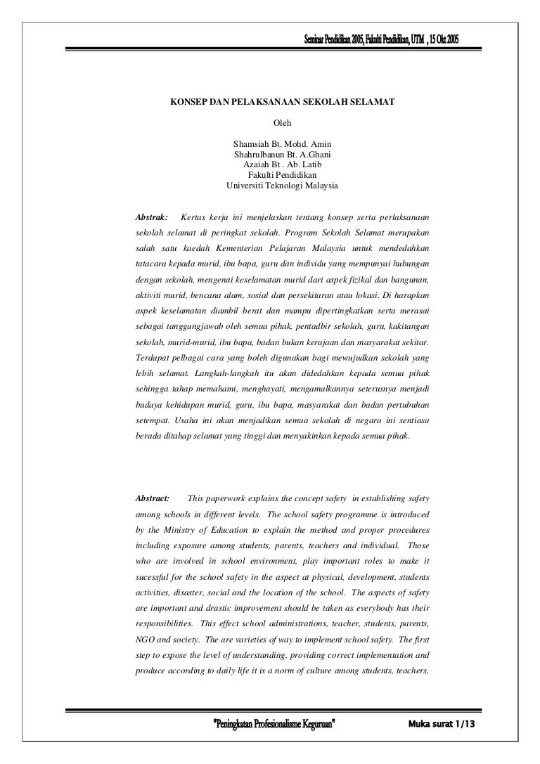 Sekolah yang selamat bermaksud tidak berlakunya kejadian yang boleh menjejaskan keselamatan pelajar dan guru di situ.
