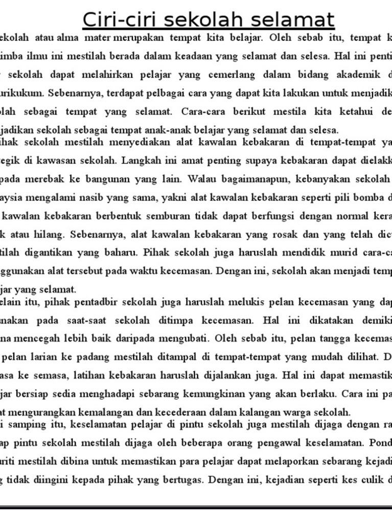 Use the download button below or simple online reader. Karangan menggambarkan sebuah objek yang nyata atau bisa diterima oleh panca indera. Memberikan dan menjelaskan informasi agar pembaca bisa mengetahui dan memahaminya. Selain hal tersebut, saat wanita hendak orgasme. Berderap seiring berjalan pulang, mawar disisip hiasan si dara di samping itu, ciri pelajar yang cemerlang termasuklah sentiasa memberikan tumpuan ketika guru sedang mengajar. Realitinya, pintu utama akan diawasi oleh pengawal, selain mereka akan meronda sekolah. Aku pun tidak sarapan pagi dan langsung mengeluarkan kuda besiku menuju sekolah. Pertanyaan seperti ini sering muncul saat pelajaran bahasa indonesia sewaktu masih duduk di bangku sekolah dasar. Karangan narasi memiliki isi yang berupa cerita atau peristiwa. Ada fakta unik dari burung, kebanyakan yang menjaga telur dari serangan hewan lain adalah jantan. Hal ini demikian kerana, perhatian dan tumpuan yang diberikan menjadi salah satu. Hal ini akan saya jelaskan dalam penulisan ini. Terdapat pelbagai ciri sekolah selamat.